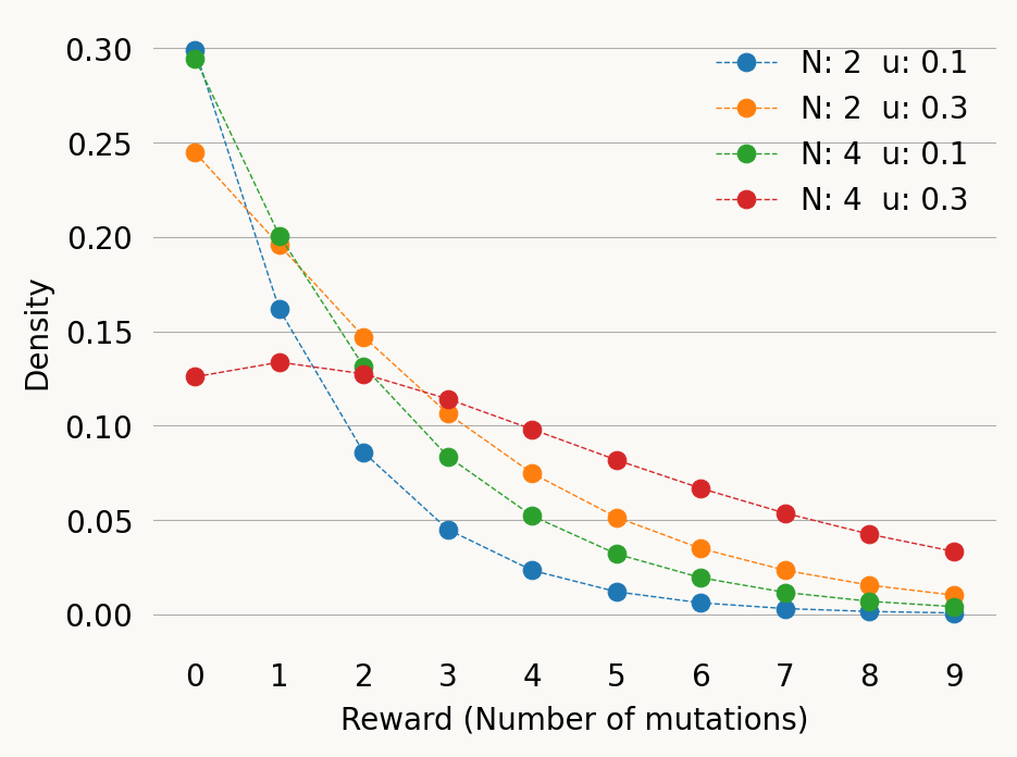 plt.xlabel('Reward (Number of mutations)')