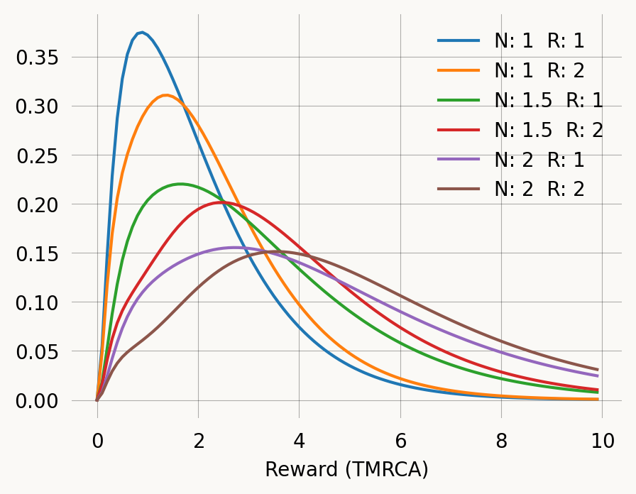 plt.xlabel('Reward (TMRCA)')