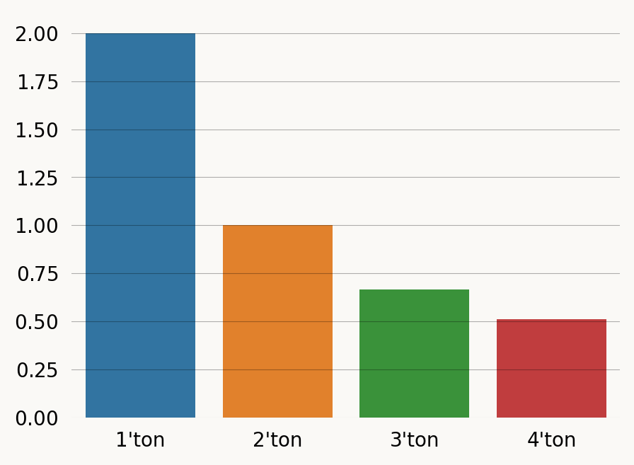 If we repeat the exercise for all numbers of descendants at locus 1, we can get the standard SFS (we we should), except that the expected 4’ton branch length is not zero. This is because there can be a 4’ton branch from the TMRCA of the samples at locus 1 and the TMRCA for the full ARG: