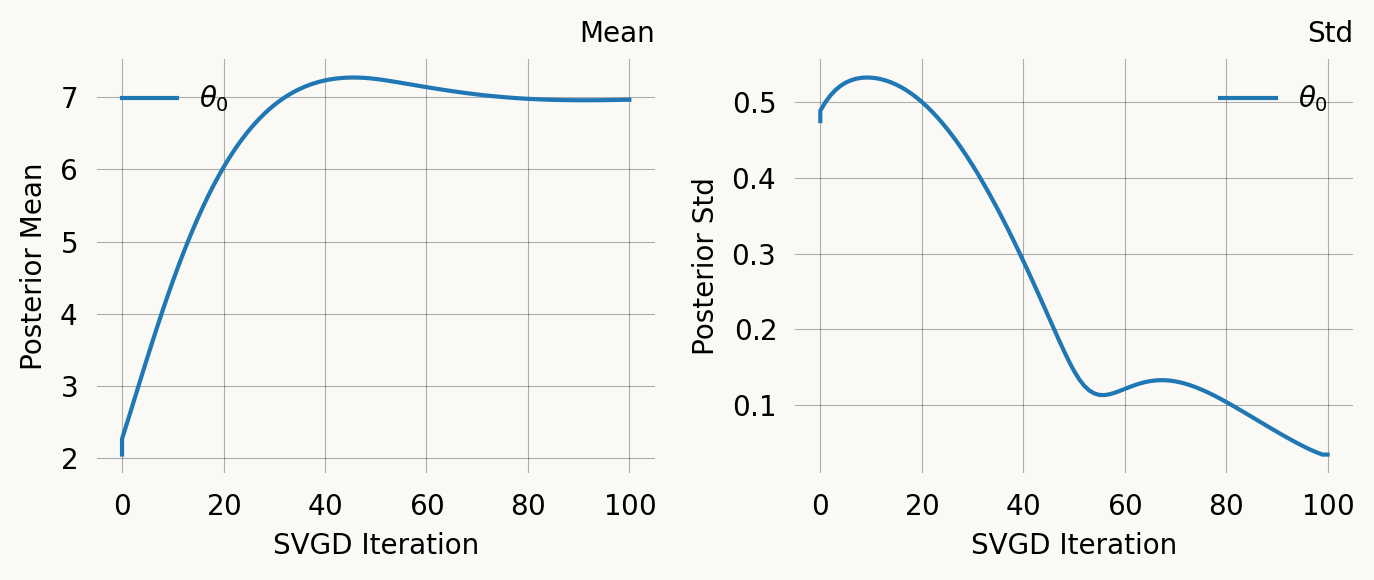 When using Adam, the learning_rate parameter passed to SVGD is ignored in favor of the optimizer’s learning rate.
