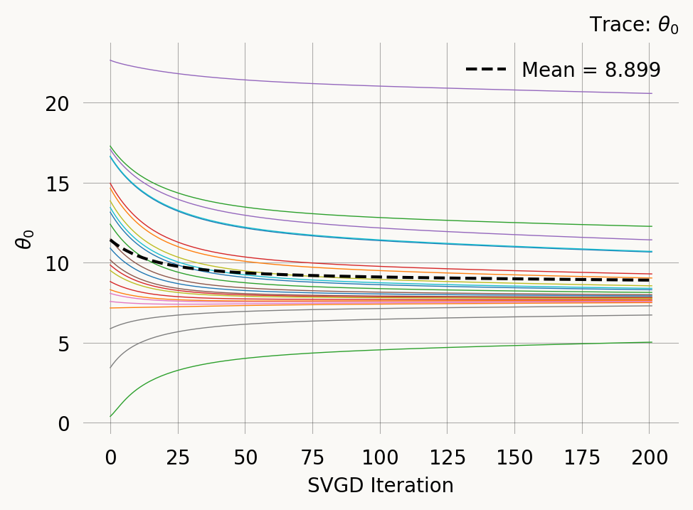 )svgd.summary()Parameter Fixed MAP Mean SD HPD 95% lo HPD 95% hi